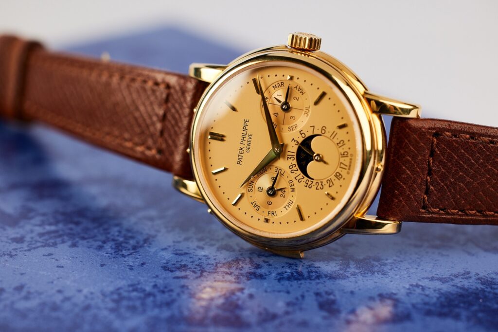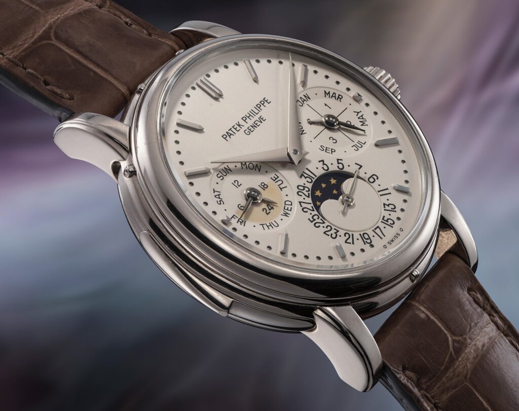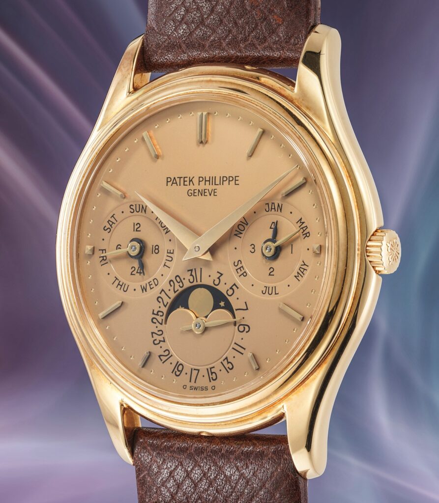 The 3974 elevated this concept to an entirely different level. Introduced in 1989 to celebrate the 150th anniversary of Patek Philippe, it incorporated a major mechanical upgrade: the addition of a minute repeater to the perpetual calendar mechanism. At the time of its release, this combination made it the most complicated wristwatch ever produced by the brand.