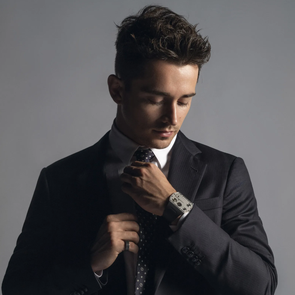 Models such as the RM 67-02 worn by Leclerc, or the RM 50-03 McLaren F1 worn by Alonso developed for racing environments exemplify the brand’s focus on ultra-light construction, shock resistance, and ergonomic comfort. These watches are not symbolic accessories, but functional instruments that mirror the precision, performance, and resilience required at the highest level of Formula 1. On the wrist of one of their ambassadors, Charles Leclerc, it can be seen as a true tool before, during and after the race.