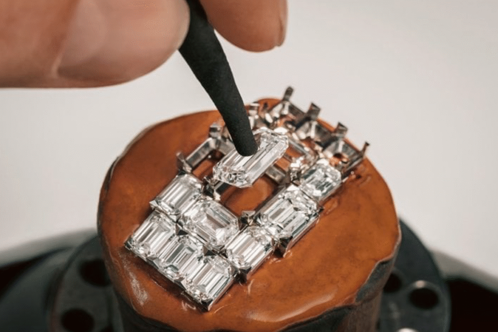 When Vacheron Constantin set out to realise the Kallista, the challenge extended far beyond its gold framework. The watch is affixed with 118 emerald-cut diamonds, amounting to about 130 carats in total. The choice of emerald cut was deliberate: it offers a flat, broad table and linear facets, allowing the stones to lie flush against one another and form a nearly continuous reflective surface. The uniformity of these diamonds was crucial. Each one had to match in colour, clarity and proportions to preserve perfect harmony. Only stones of the highest gemmological quality were selected: colourless in the D to F range and of exceptional clarity, from internally flawless to very very slightly included. Emerald cuts highlight transparency more than brilliance, revealing inclusions with unforgiving clarity. This meant that Vacheron’s gemologists rejected any diamond that displayed even the faintest imperfection.