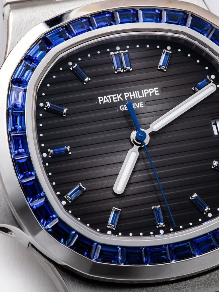 For the 5711 in particular, the challenge is further amplified by the bezel architecture itself. The Nautilus’s octagonal case requires baguette-cut stones of extremely precise calibration: each must be perfectly matched to the next in color, cut angle, and transparency, or the visual continuity of the setting is immediately compromised.